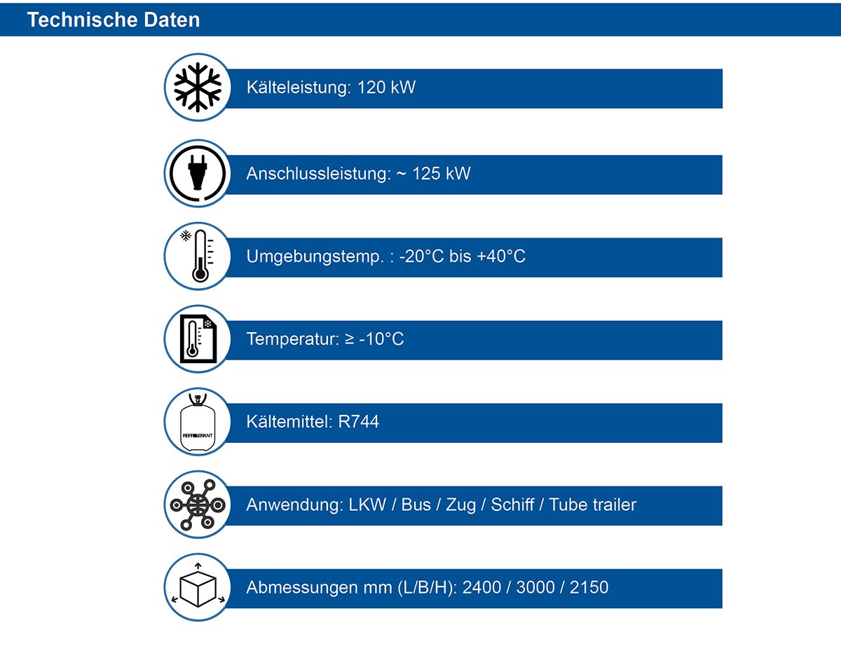 Mit einer beeindruckenden Kühlleistung ist das System in der Lage, die Kühlung für eine schnelle und sichere Betankung von Wasserstofffahrzeugen zu gewährleisten.